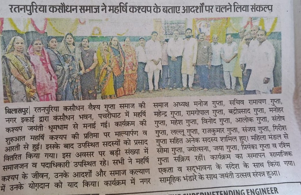 श्री महर्षि कश्यप जयंती रतनपुर के कार्यक्रम की झलकियां। admin November 11, 2025 Events, Press Vigyapti